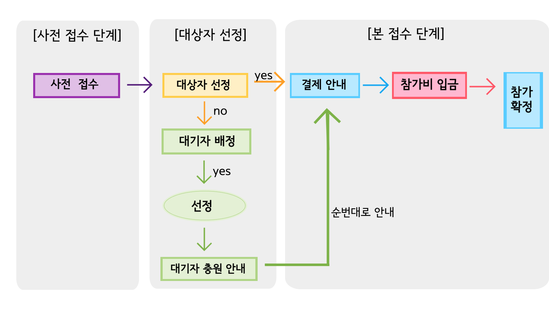 - 신청하신 분들 대상으로 참가 대상자 여부 확인 후 별도 결제 안내 드립니다.