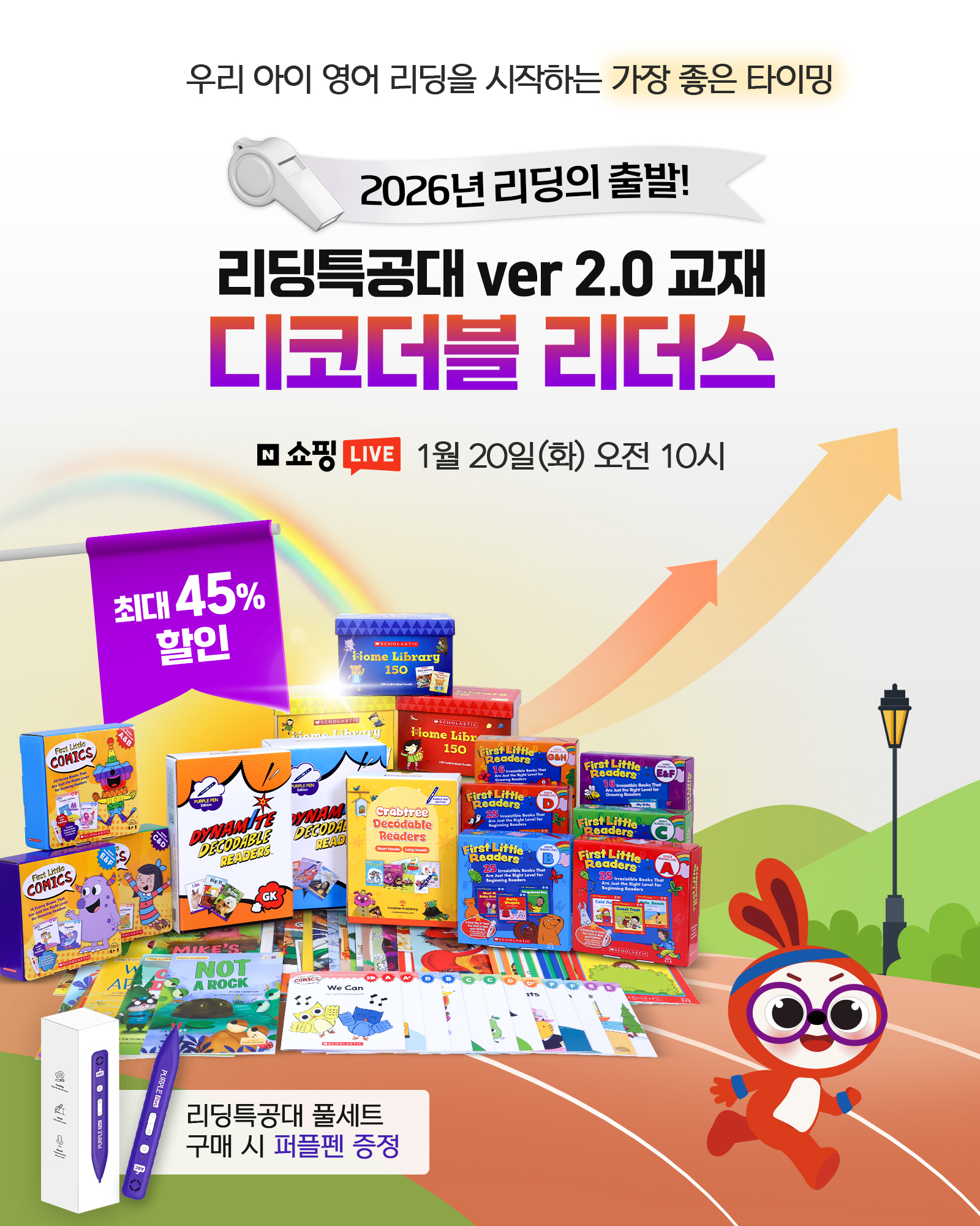 미국에서 가장 주목받는 Science of Reading 파닉스 학습법을200% 반영한 「디코더블 리더스」로 우리 아이, 이제 스스로 리딩이 가능합니다.※네이버라이브 행사는 1/26(월)까지 진행됩니다.